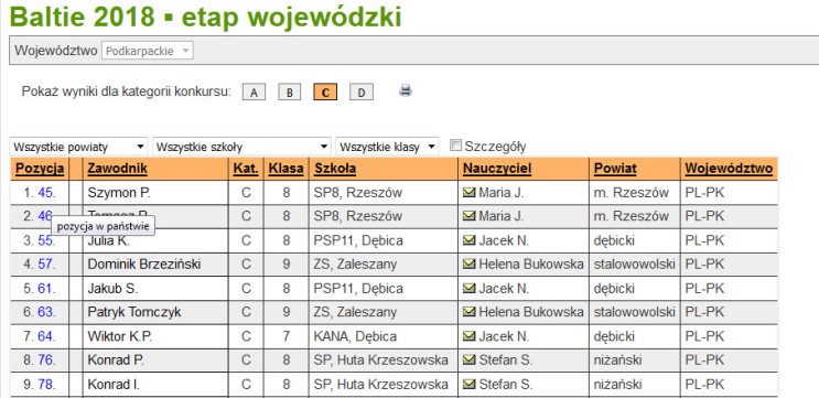 Etap wojewódzki konkursu BALTIE 2018.