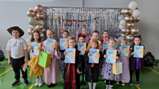 Następnie uczniowie zaprezentowali program artystyczny na bardzo wysokim poziomie 👏, będący efektem ogromnej pracy i zaangażowania nauczycielek, uczniów oraz rodziców 🌟. Na scenie podziwialiśmy piękne układy taneczne 💃🕺, radosne piosenki 🎶, wzruszające wiersze 📜 oraz inscenizację bajki „Brzydkie Kaczątko” 🦢. Występy zachwyciły publiczność i zostały nagrodzone gromkimi brawami.