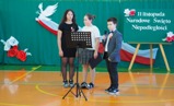 Za przygotowanie akademii odpowiadali uczniowie klasy 5. Całość uświetniły występy wokalne, które przedstawili również uczniowie klasy 4 oraz uczennica klasy 3 - Julia Czaja.